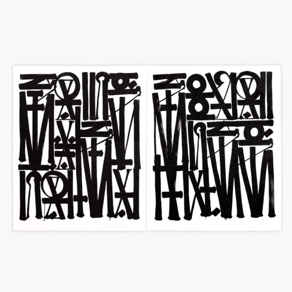 Los Angeles-based artist RETNA accesses spaces between text-based imagery and abstract emotive states with his mysterious lines of verse. Each block of text is a sophisticated system of hieroglyphs, calligraphy and illuminated script. With influences from Arabic, Egyptian, Hebrew, Anglo-Saxon (or Old English) and Native American typographies, RETNA’s distinctive language communicates a personal form of poetry. RETNA’s messages are masked in ciphers: words and meanings that are never immediately revealed, nor capable of being accurately translated. He employs ancient totemic symbologies as a baseline, overlaid with beats from the urban jungle (sourced from his background in Los Angeles, born from Pipil – western indigenous El Salvadorian – Cherokee, Spaniard, and African-American bloodlines. These diverse subcultures are channeled into his work, often accompanied (either in the studio or on the street) by a stream of ambient or musical sounds. It is this multi-sensory experience that is brushed onto the surface for RETNA: a synthesis of auditory and visual content, spontaneously manifested.